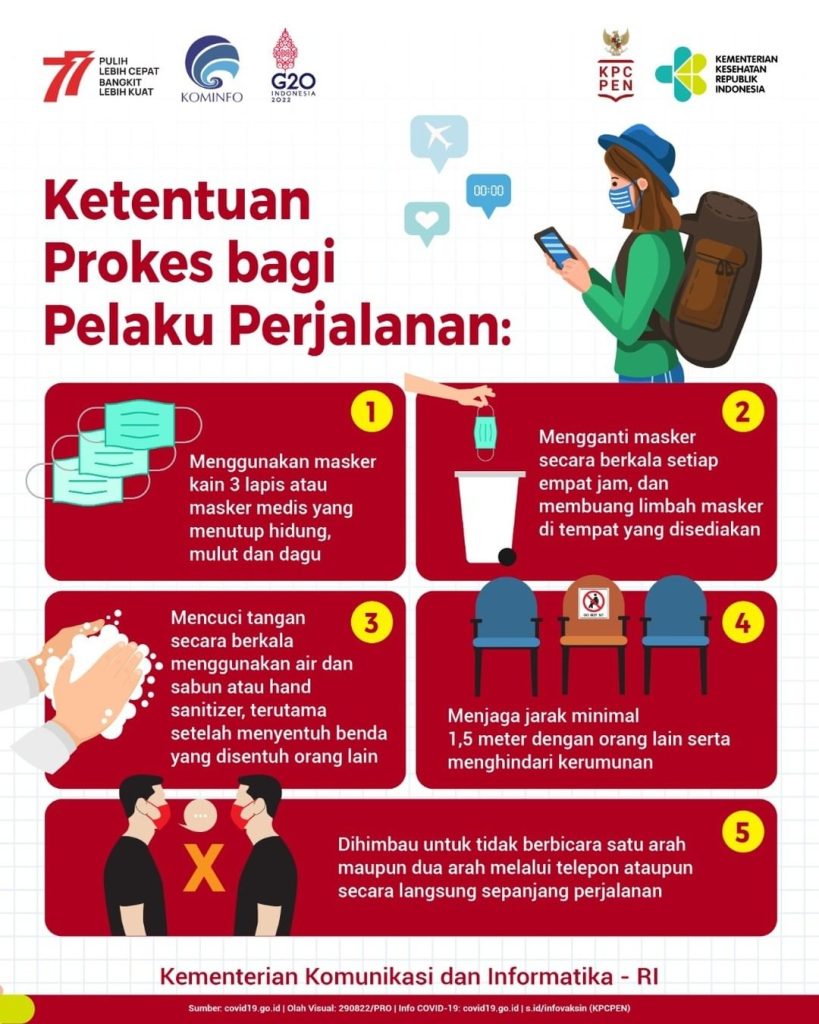 Di dalamnya turut mengatur ketentuan protokol kesehatan bagi pelaku perjalanan, yakni: