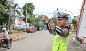 Kepahiang, jejakkeadilan.com, jumat(03/02/2023) pukul 07.00 Wib Bripka Supriyanto personil Sat Lantas dan Bripda Aditya personil Sat Samapta Polres Kepahiang Polda Bengkulu melaksanakan strong point di jalan Simpang Benteng kabupaten Kepahiang