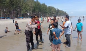 “Kami hadir untuk ciptakan perasaan aman dan nyaman kepada para pengunjung di tempat wisata Pantai Pandan Wangi,” ungkap AKP S.M.O Aritonang, S.H., M.H.