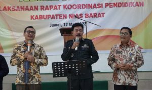 Jadikan Rakor ini sebagai wadah untuk mengevaluasi capaian pelaksanaan program kegiatan dan mengidentifikasi berbagai isu dan permasalahan serta solusi yang diperlukan terkait Pendidikan. Tingkatkan koordinasi dan kerjasama dengan semua pihak, untuk bersama-sama memajukan pembangunan bidang pendidikan, agar masyarakat Nias Barat semakin maju dan sejahtera, ujar Bupati.