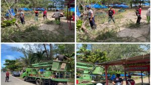 Bengkulu – Pada Sabtu (22/06/2024) pagi, personel Sat Samapta Polresta Bengkulu Polda Bengkulu, Melaksanakan kegiatan pengamanan pemotongan serta pembersihan pohon tumbang di Sport Center Pantai Panjang Kota Bengkulu.
