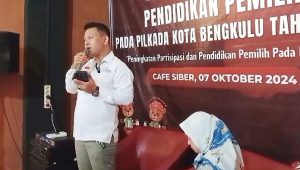 Kota Bengkulu, JejakKeadilan.com – Komisi Pemilihan Umum (KPU) Kota Bengkulu bekerja sama dengan Serikat Media Siber Indonesia (SMSI) Kota Bengkulu telah melaksanakan Sosialisasi Pendidikan Pemilih bagi pemilih Pilkada Kota Bengkulu Tahun 2024 di Cafe Siber, Senin (7/10/2024).