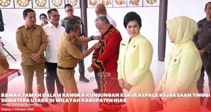 Pada Selasa, 07 Oktober 2025, Kepala Kejaksaan Tinggi Sumatera Utara melaksanakan kunjungan di wilayah Kota Gunungsitoli dan Kabupaten Nias Utara. Sementara itu, kegiatan di Kabupaten Nias dan Kabupaten Nias Selatan akan dilaksanakan pada Rabu, 08 Oktober 2025.