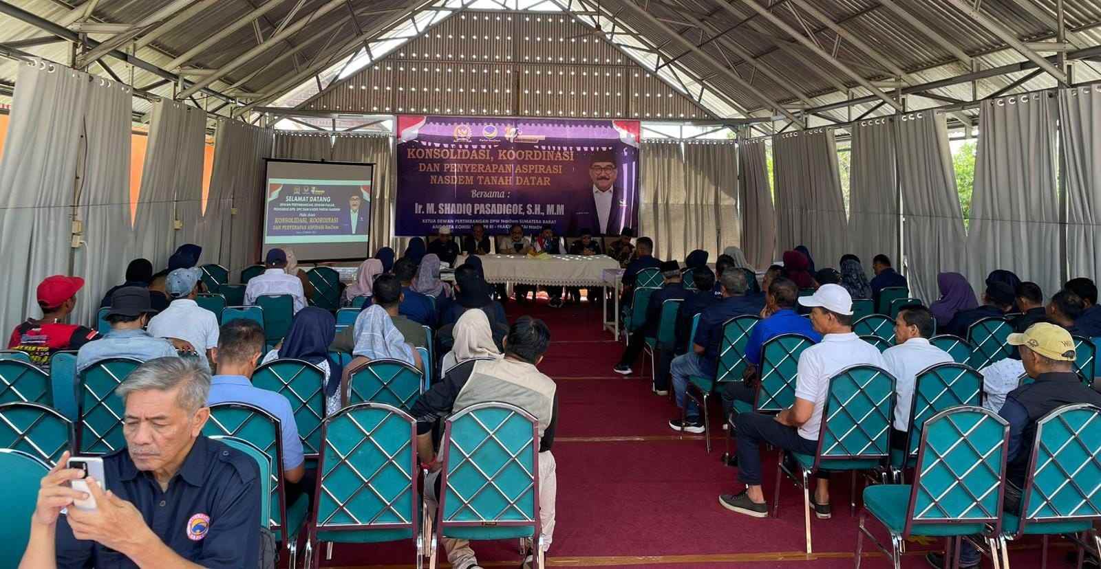 TANAH DATAR, Jejakkeadilan.com – Anggota DPR RI Fraksi Partai NasDem, Ir. M. Shadiq Pasadigoe, S.H., M.M., menggelar kegiatan koordinasi, konsolidasi, dan penyerapan aspirasi bersama simpatisan serta kader Partai NasDem di Aula Syekh Muhammad Said, Parak Jua, Batusangkar, Selasa (21/10/2025).
