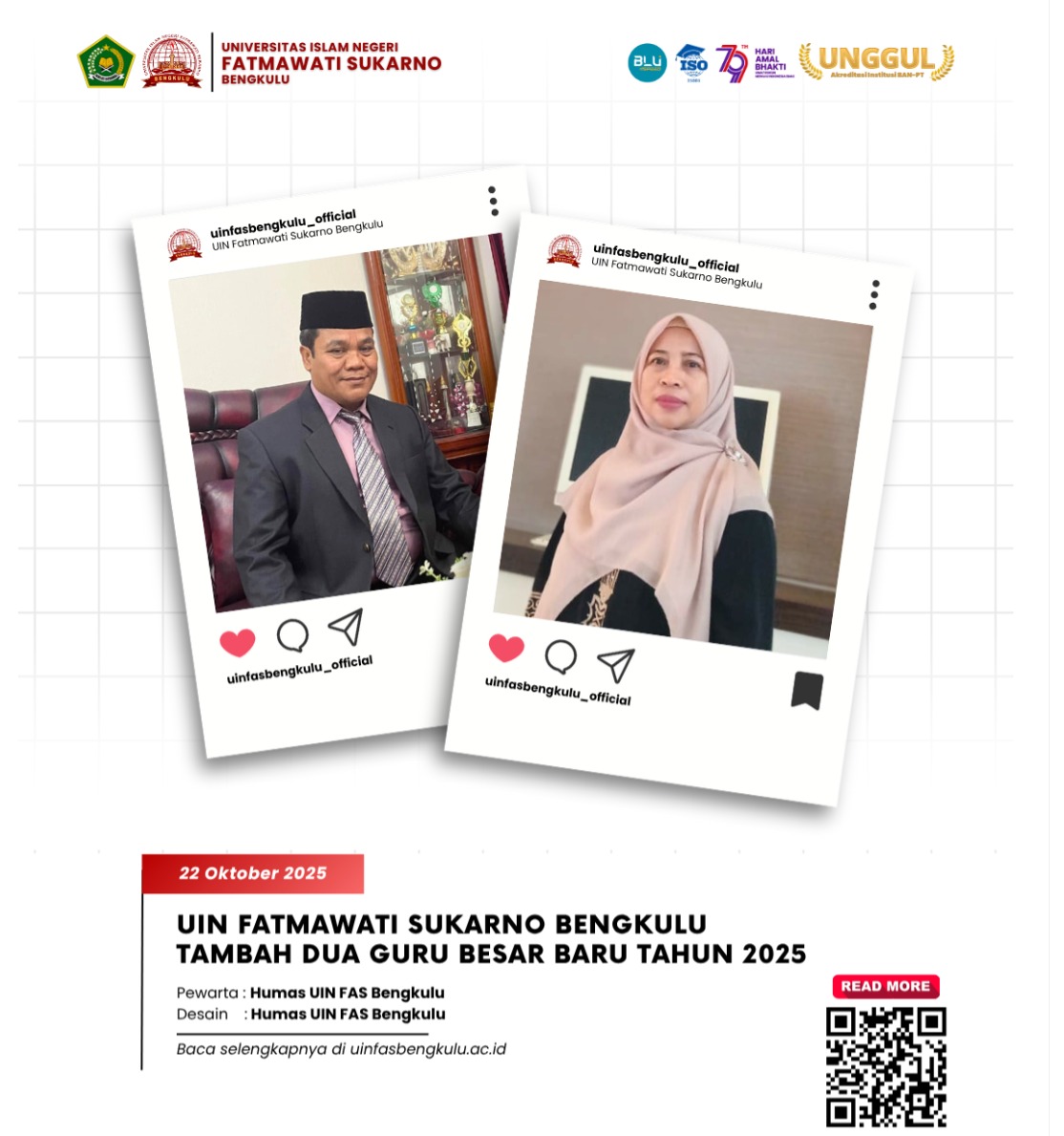 Adapun kedua tokoh tersebut adalah Prof. Dr. Nurul Hak, M.A., yang ahli di bidang Ilmu Hukum Islam Indonesia, serta Prof. Dr. Lim Fahimah, Lc., M.A., pakar dalam Ilmu Fiqih Mawaris. Keberhasilan ini tidak hanya mempertegas komitmen UIN Fatmawati Sukarno dalam meningkatkan kualitas akademik, tetapi juga menjadi bukti nyata kontribusi kampus terhadap pengembangan ilmu pengetahuan yang berdaya saing global.