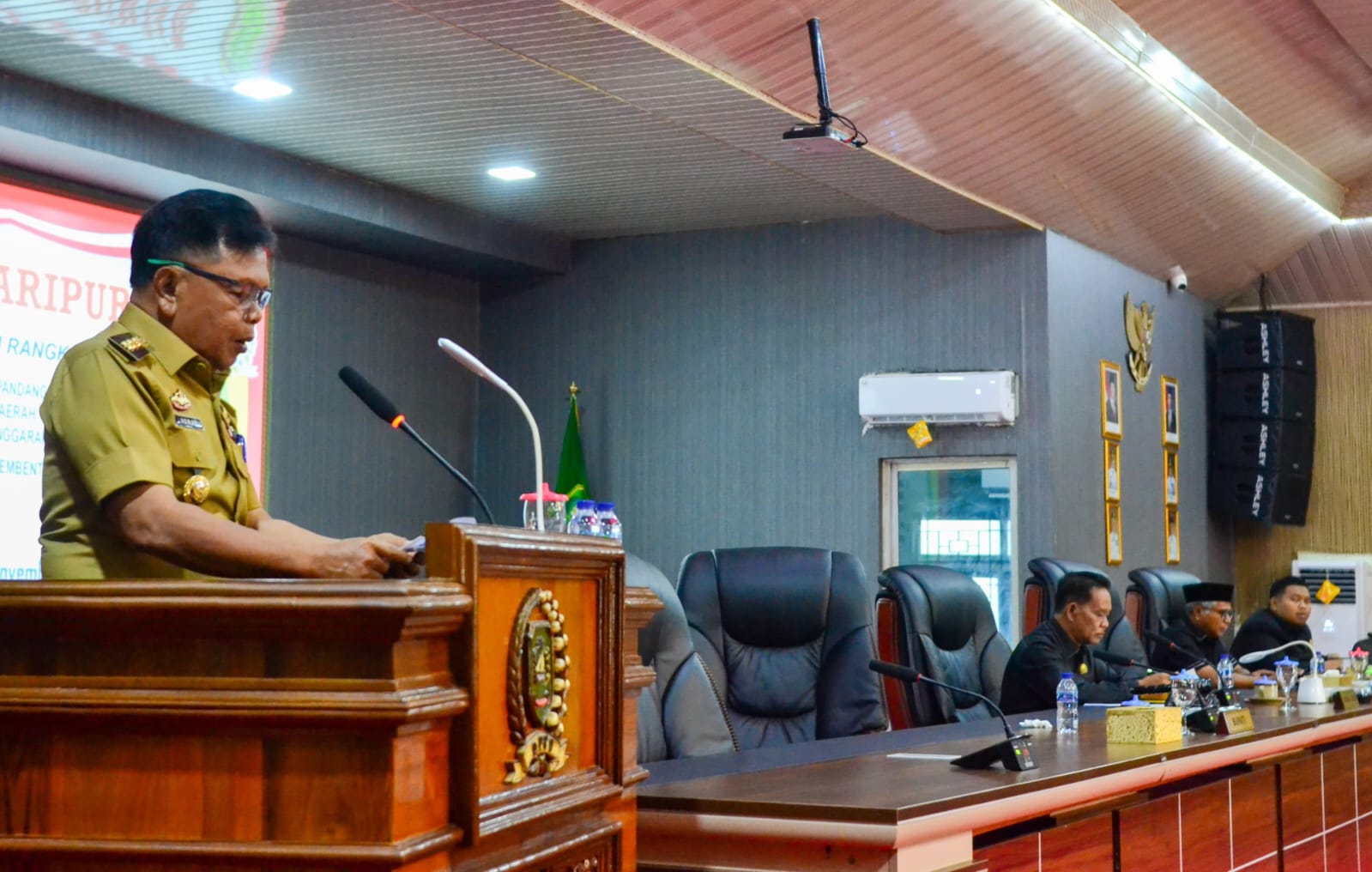 Ketua DPRD Kabupaten Kepulauan Meranti, yang pimpin rapat paripurna dihadiri Wakil Ketua DPRD, anggota DPRD, Forkopimda, pimpinan instansi vertikal, Sekda Meranti, pejabat eselon, camat se Kabupaten Meranti, serta lainnya.