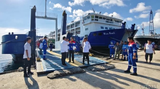 GUNUNGSITOLI, JejakKeadilan.com – Bupati Nias, Ya’atulö Gulö, S.E., S.H., M.Si., bersama Wali Kota Gunungsitoli, Sowa’a Laoli, S.E., M.Si., meninjau langsung kedatangan Kapal Wira Prime yang berlayar dari Pelabuhan Padang, pada Senin (01/12) dan tiba di Pelabuhan Gunungsitoli pada Rabu pagi (03/12/2025).