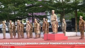 Upacara Pengibaran Bendera Merah Putih dipimpin oleh Sekretaris Daerah Kabupaten Nias, Samson P. Zai, S.H., M.H, dengan petugas upacara dari ASN BKPSDM Kabupaten Nias, serta diikuti oleh Staf Ahli Bupati, Asisten Sekda, Kepala Perangkat Daerah, Kepala Bagian, dan seluruh ASN Lingkup Pemkab Nias. Senin, 12 Januari 2026.